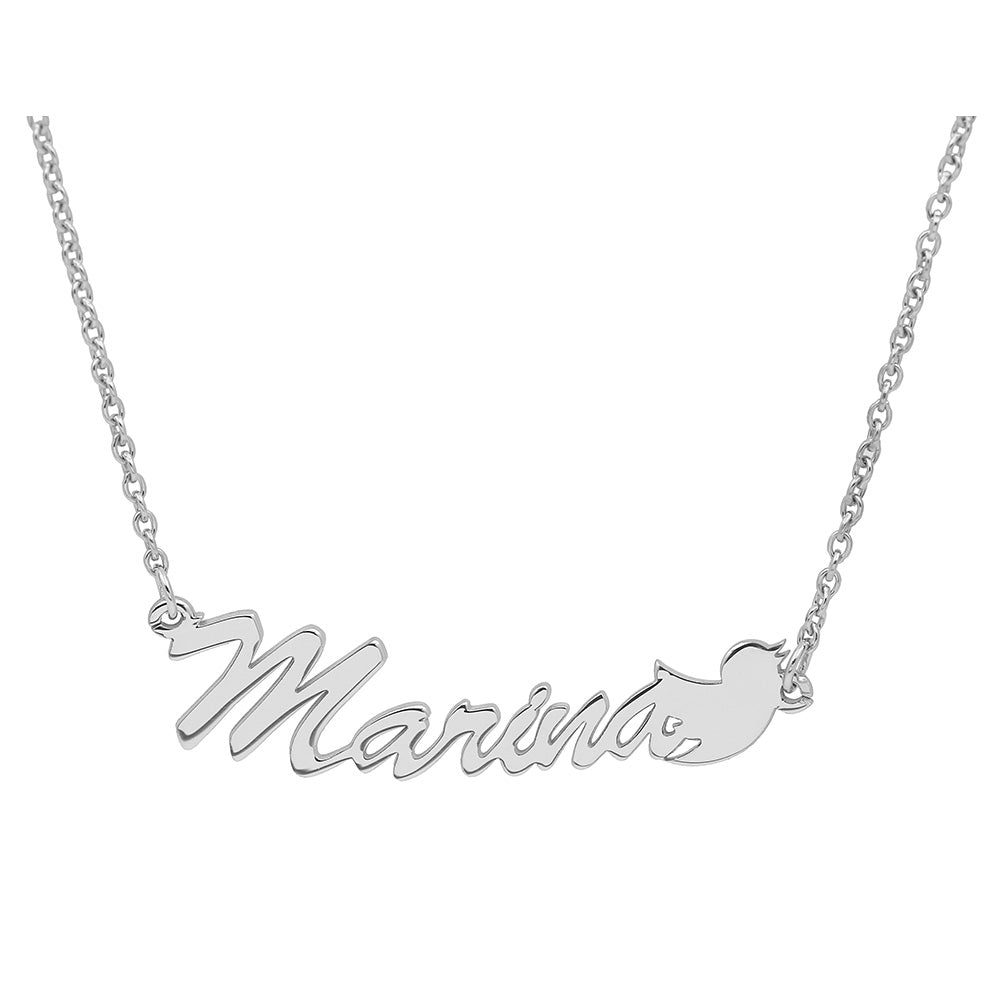 Personalisieren Sie Ihre eigene Namenskette mit Vogel-Motiv und einem Namen Ihrer Wahl. Ein schönes individualisiertes Geschenk für Familienangehörige, Freunde oder auch für sich selbst. Die Gesamtlänge der Kette beträgt ca. 45cm und ist durch die Namenslänge variabel. Hier ein Tipp – wenn Sie die Kette nicht mit Ihrem Namen versehen möchten, können Sie auch Ihren Spitznamen oder auch ein Wort welches eine besondere Bedeutung für Sie hat auswählen!